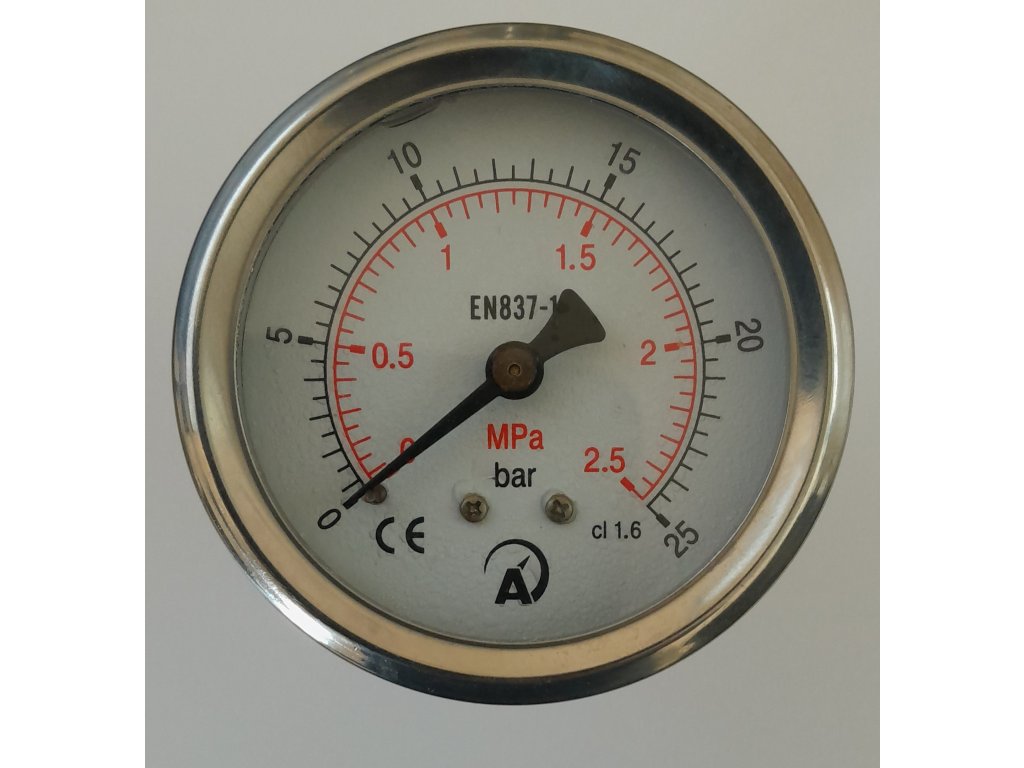 › Výprodej a použité zboží › Manometry › Manometr standardní pr.63mm, zadní G1/4", rozsah 0-25 bar/0-2,5 MPa, nerez pouzdro