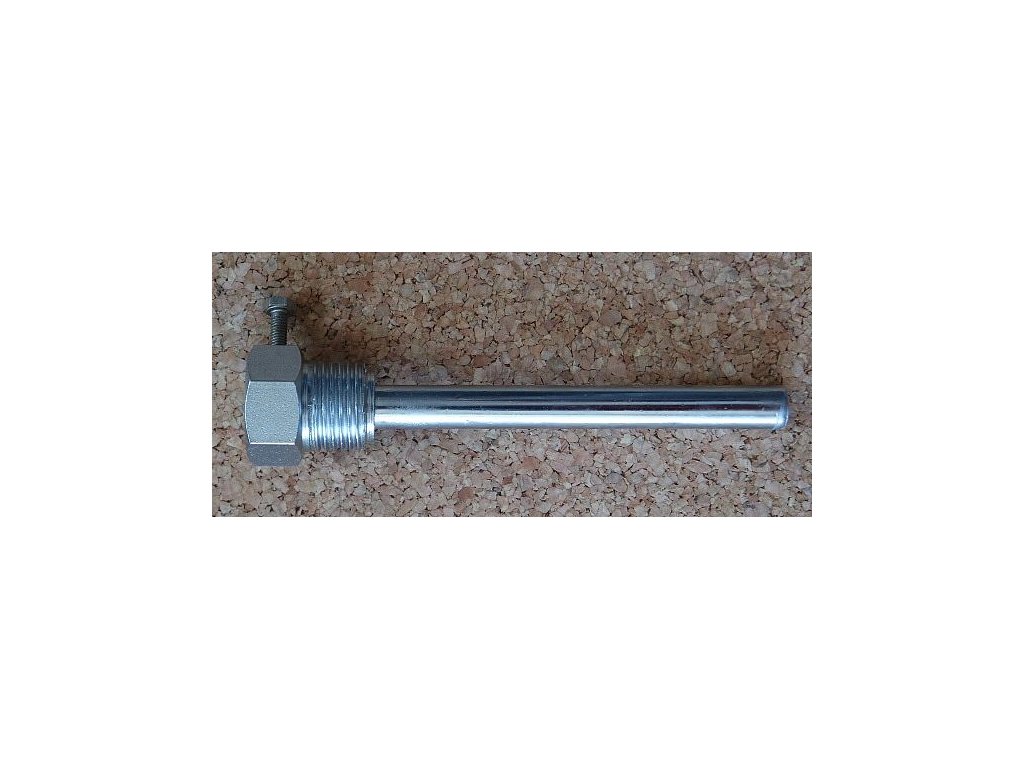 PopisJímka je určena k zabudování do určeného zařízení (např. elektrický kotel, ohřívač vody). Montáž jímky se provádí zašroubováním hrdla jímky do pláště zařízení při použití vhodného těsnění. Instalace termostatu se provádí nasunutím stonku termostatu do jímky určené velikosti a zajištěním šroubem M4 (termostaty řady TH 160). U termostatů řady TH 140 je nutno polohu hlavice termostatu stanovit před dotažením převlečné matice. Otáčením hlavice po dotažení převlečné matice by se mohl termostat poškodit.Maximální pracovní přetlak jímek je PN 6 podle ČSN 130010. Tlaková zkouška těsnosti se při výrobě provádí vzduchem pod vodní hladinou u všech vyrobených jímek.Typ termostatu TH 162, TH 163 L=110mm L1=122mm závit G1/2" , provedení ocel chromovaná