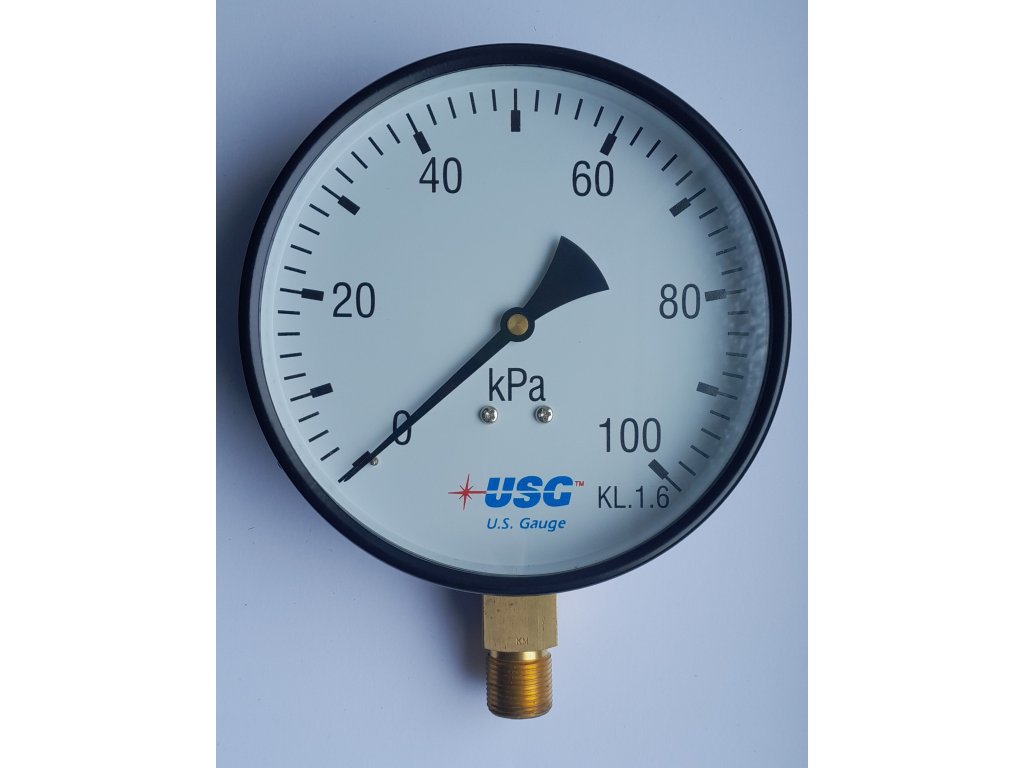 › Teploměry a manometry › Manometry › Standardní › Standardní pr. 150mm, s přípojem M20x1,5 › Manometr standardní pr. 150mm, spodní přípoj M20x1,5, rozsah 0-100 kPa