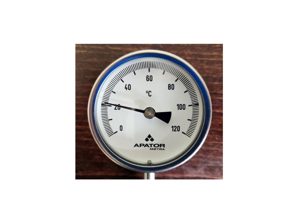 Průměr pouzdra 60 mm· Připojení spodní (radiální)· Třída přesnosti 2 (EN 13 190)· Teplotní rozsah 0-120°C· Délka stonku 400 mm· Průměr stonku 8 mm· Hlavice a stonek z nerezové oceli třídy 17· Průzor skleněný· Číselník Al, podklad bílý, stupnice černá· Ukazovatel Al, barva černá· Měřící element bimetal